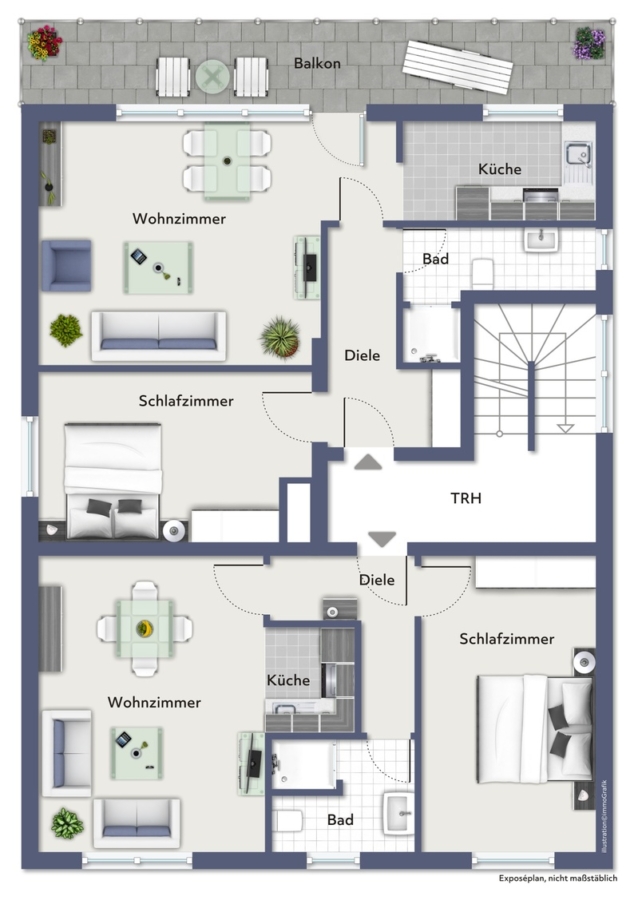 Die gesamte Wohnfläche von ca. 288 m² verteilt sich auf insgesamt 8 Zimmer, darunter 5 Schlafzimmer und 4 Badezimmer. Zusätzlich stehen ca. 150 m² Nutzfläche, eine Garage und 4 PKW-Außenstellplätze zur Verfügung. Jede Wohneinheit bietet individuellen Wohnkomfort und 3 von 4 Einheiten sind vermietet.