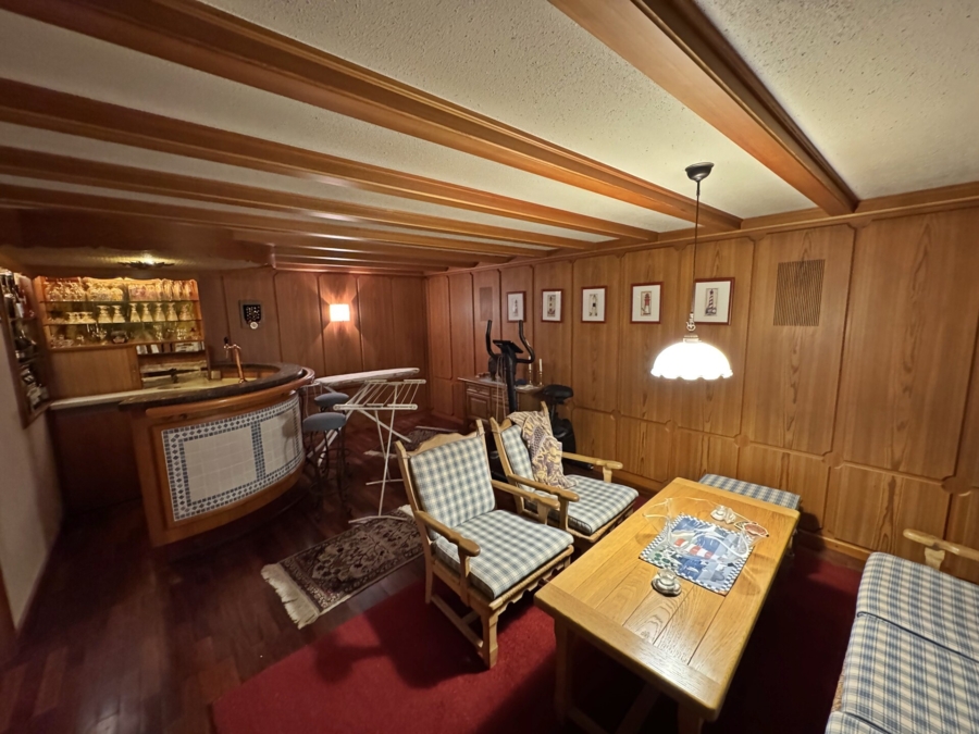 Abgerundet wird dieses Objekt durch knapp 52 m² Nutzfläche im Kellergeschoss. Hier findet sich neben dem Heizungsraum auch ein praktischer Hauswirtschafts-/Vorratsraum mit Platz für Waschmaschine und Trockner, eine Werkstatt sowie ein Hobbyraum, welcher mit einer einzigartigen Bar ausgestattet ist.