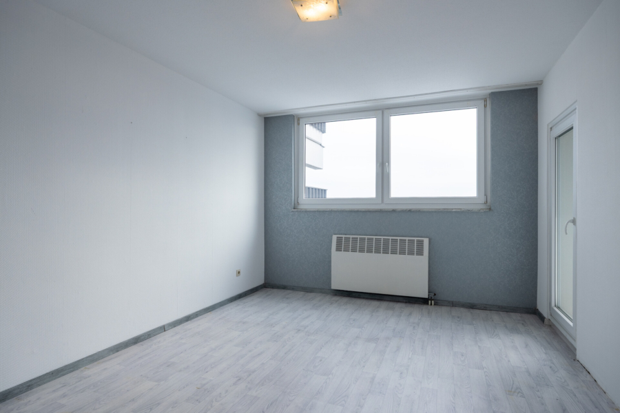 Der großzügige Wohnbereich öffnet sich zum Balkon und lädt dazu ein, nach einem langen Tag den Blick über die Stadt schweifen zu lassen und zur Ruhe zu kommen. Sowohl vom Wohn- als auch vom Schlafzimmer aus ist der Balkon zugänglich und bietet einen weiten Ausblick über die Stadt bis hin zum Kölner Dom. Die separate Küche, ein praktischer Abstellraum sowie das innenliegende Badezimmer mit Badewanne ergänzen den harmonischen Grundriss.