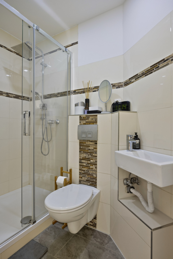 Das Haus umfasst 12 Wohneinheiten und bietet Ihnen durch den eingebauten Personenaufzug barrierearmen Zugang zu Wohnung (5–7 Stufen) und Keller.